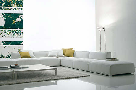 Divano angolare in stile contemporaneo. Disponibile anche in versione divano singolo. Alta spalliera con poggia-testa, rende molto comodo il salotto...